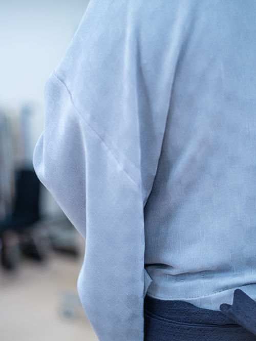 たまたま、この生地のぼかしを着ておられるお客様と話をする機会がありましたので、 ぼかしの感覚、色味の見え方を勉強することができました(このモノづくりは私は初めて)。
